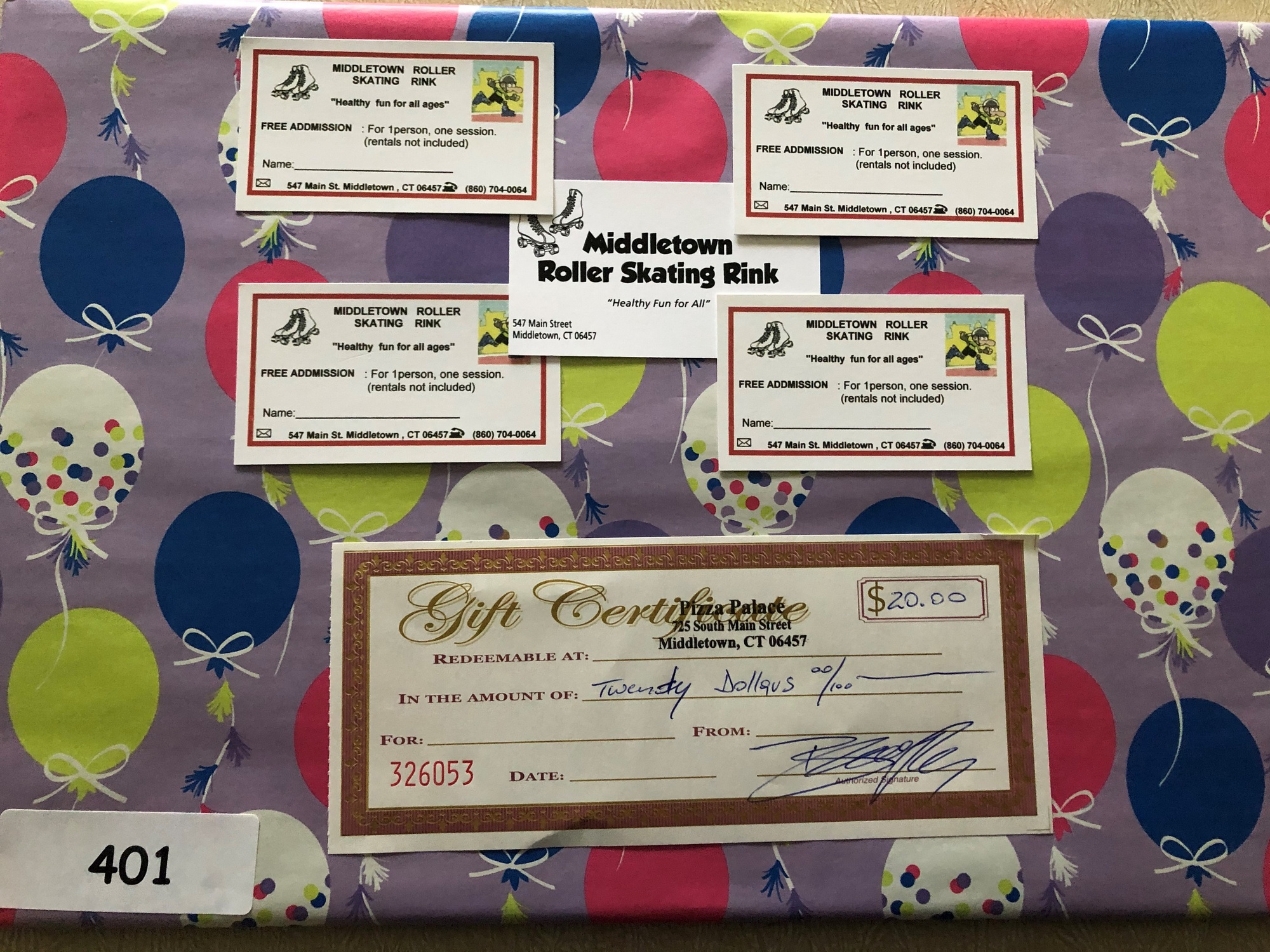 Pizza Palace $20 gift certificate & Middletown Roller Skating Rink 4 vouchers for roller skating admission