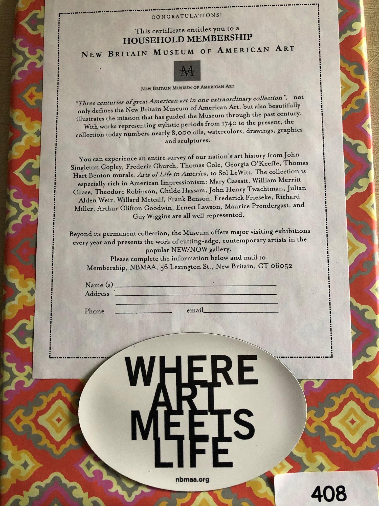 New Britain Museum of American Art 1 household membership