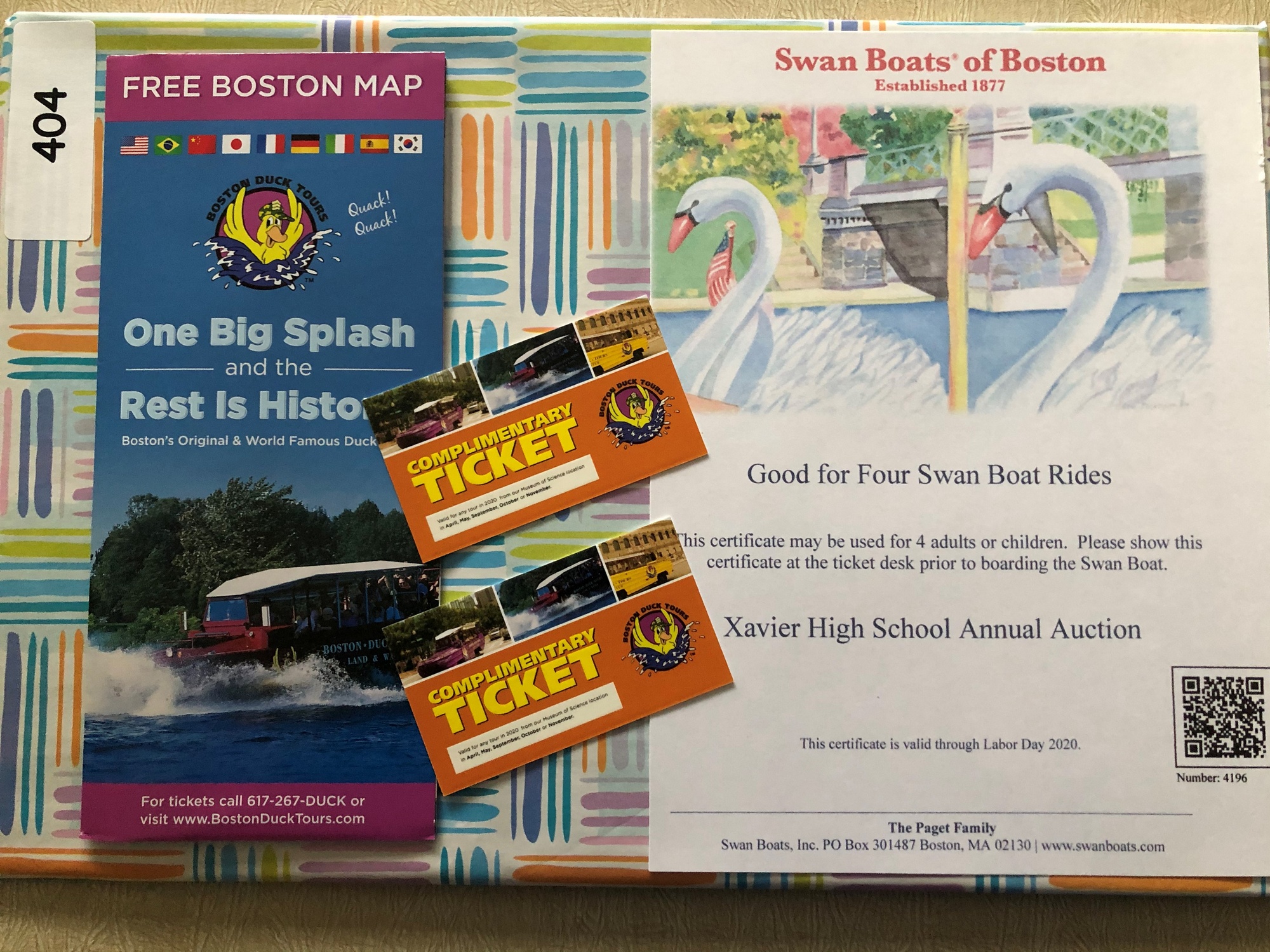 Swan Boats of Boston certificate for 4 for Swan Boat Ride & Boston Duck Tours 2 complimentary tickets (Non-Peak Season)